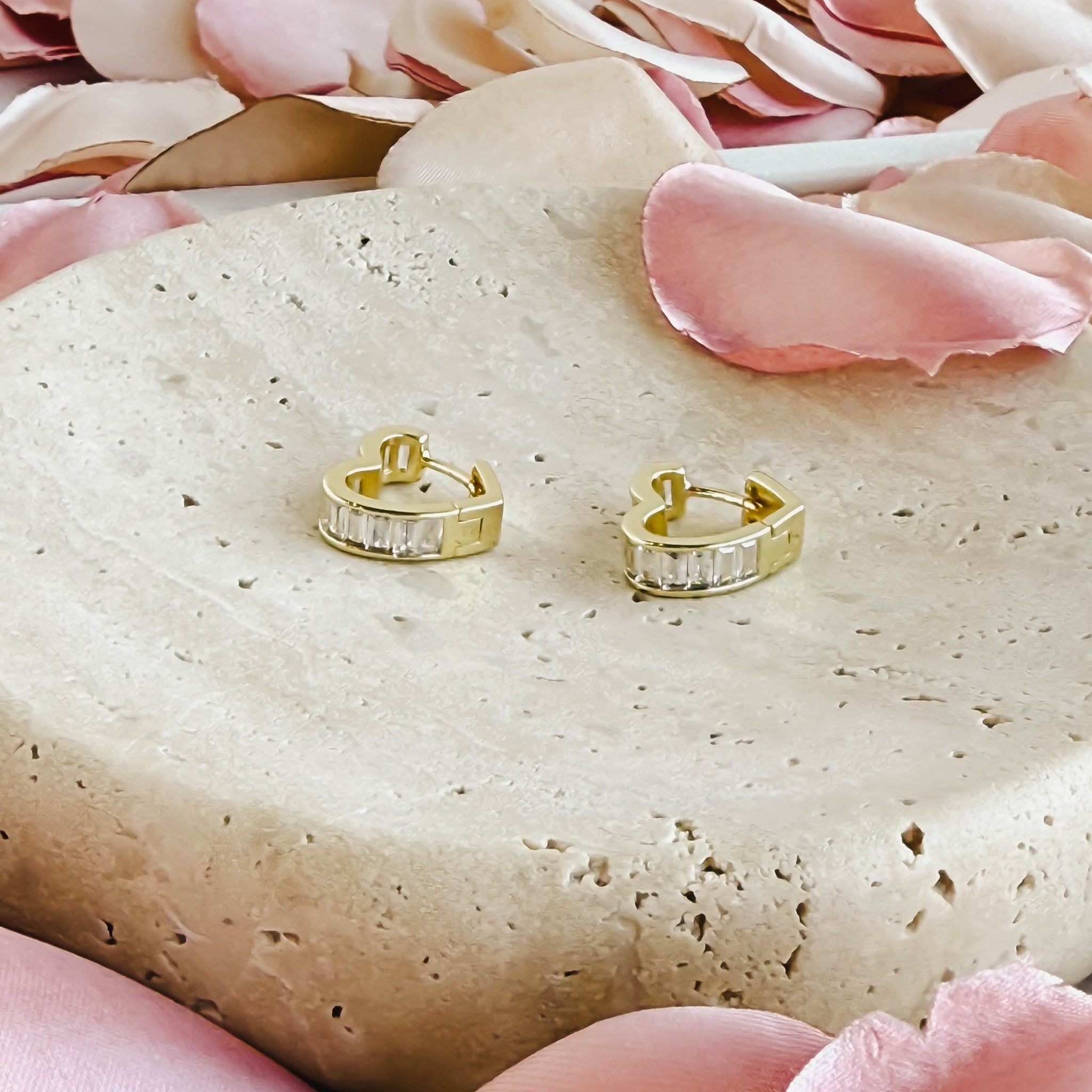 Subtle heart shaped huggies with a cz inlay