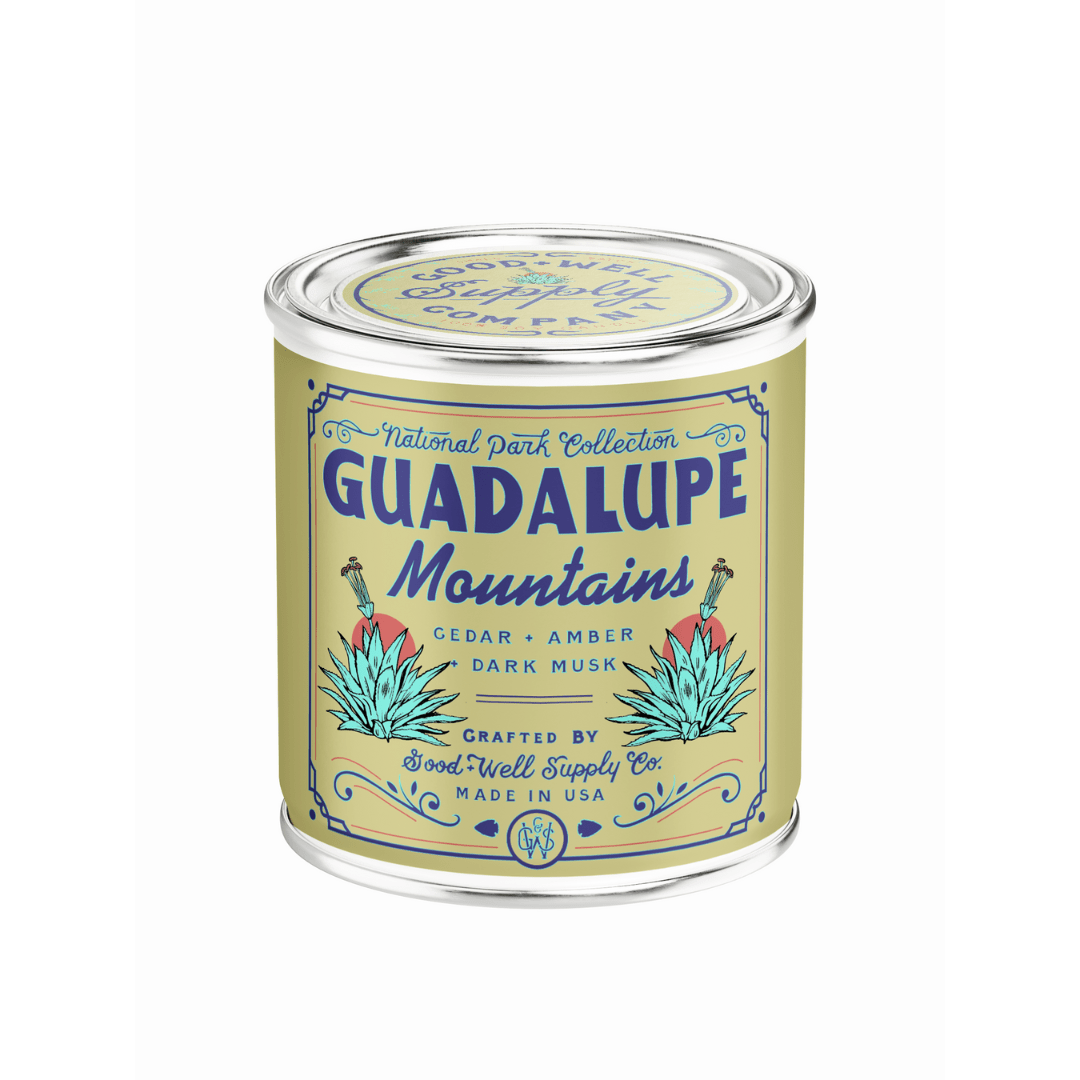 An ancient reef turned mountain range. Guadalupe’s scent is deep and earthy — smoky cedar, warm amber, and a base of dark musk. It's west Texas rugged with a hint of mystery. High desert solitude in every burn.