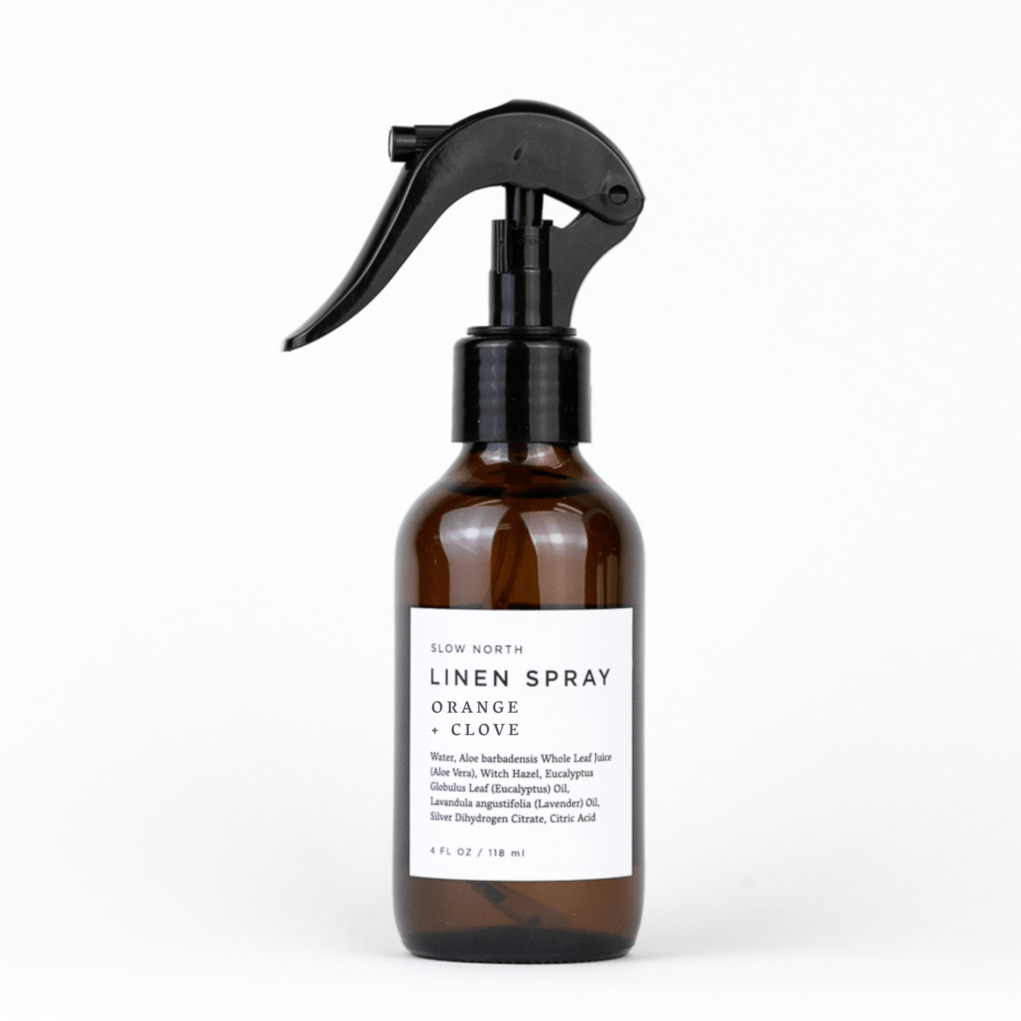 Spritz our all-natural linen spray anywhere in need of a little pick-me-up! Our custom blend of orange, clove, and cinnamon essential oils, made to encourage a welcoming environment, is soothing and peaceful with a warm and uplifting aroma. Ingredients: Water, Aloe barbadensis Whole Leaf Juice (Aloe Vera), Witch Hazel, Citrus sinensis (Orange) Oil, Cinnamomum verum (Cinnamon Leaf) Oil, Syzygium aromaticum L. (Clove Bud) Oil, Silver Dihydrogen Citrate, Citric Acid Ideas for Use: