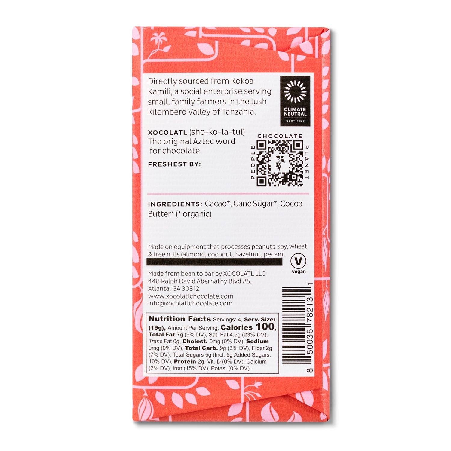Dieser aromatische Kakao wird von Kokoa Kamili gekauft, einem Sozialunternehmen, das gegründet wurde, um tansanischen Bauern zu helfen, für ihre Arbeit gerecht bezahlt zu werden und um die Qualität und den Ruf tansanischen Kakaos international zu verbessern.