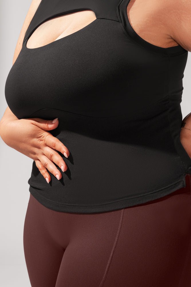 Modesta, pero con un toque picante, la camiseta de tirantes Peekaboo Crew seguramente llamará la atención en el gimnasio. Diseñada para la chica que se toma su estilo tan en serio como su sudor.