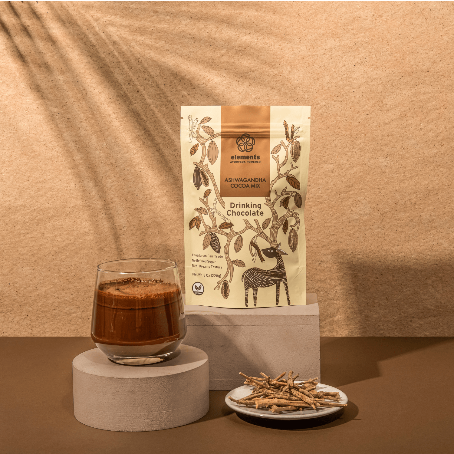 Introducing Elements Truffles Drinking Chocolate Mix infused with Ashwagandha, the ancient adaptogenic superfood. It is an Ayurveda superfood known for its energizing and stress relieving properties.