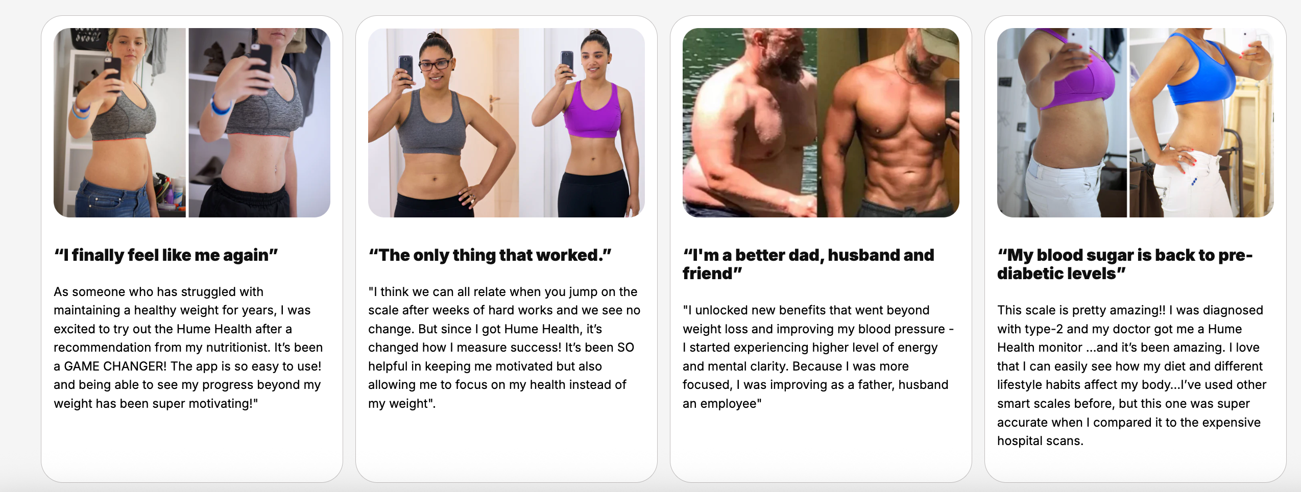 Hume offers products that are grounded in science and tested against medical devices. In an independent study conducted by socotech, it has been proven that Hume is +/- 3% from a DEXA scan. We’re so confident about the accuracy of our products that we offer a 30-day trial/return policy with no questions asked!